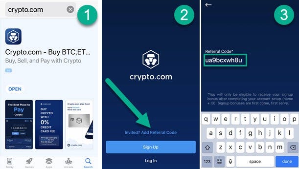Search for crypto.com on your mobile device to download the crypto.com app. From there you can sign up for an account. If you have a referral code, go ahead and click the Add Referral Code link. Doing this will get both you and I a $25 USD referral bonus! This is my code if you choose to use it — ua9bcxwh8u.