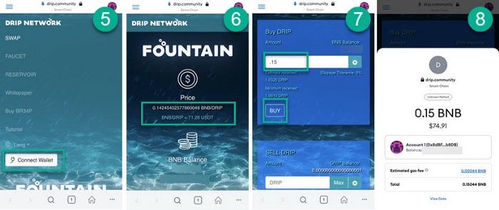 Go to https://drip.community/fountain and exchange BNB for DRIP.
